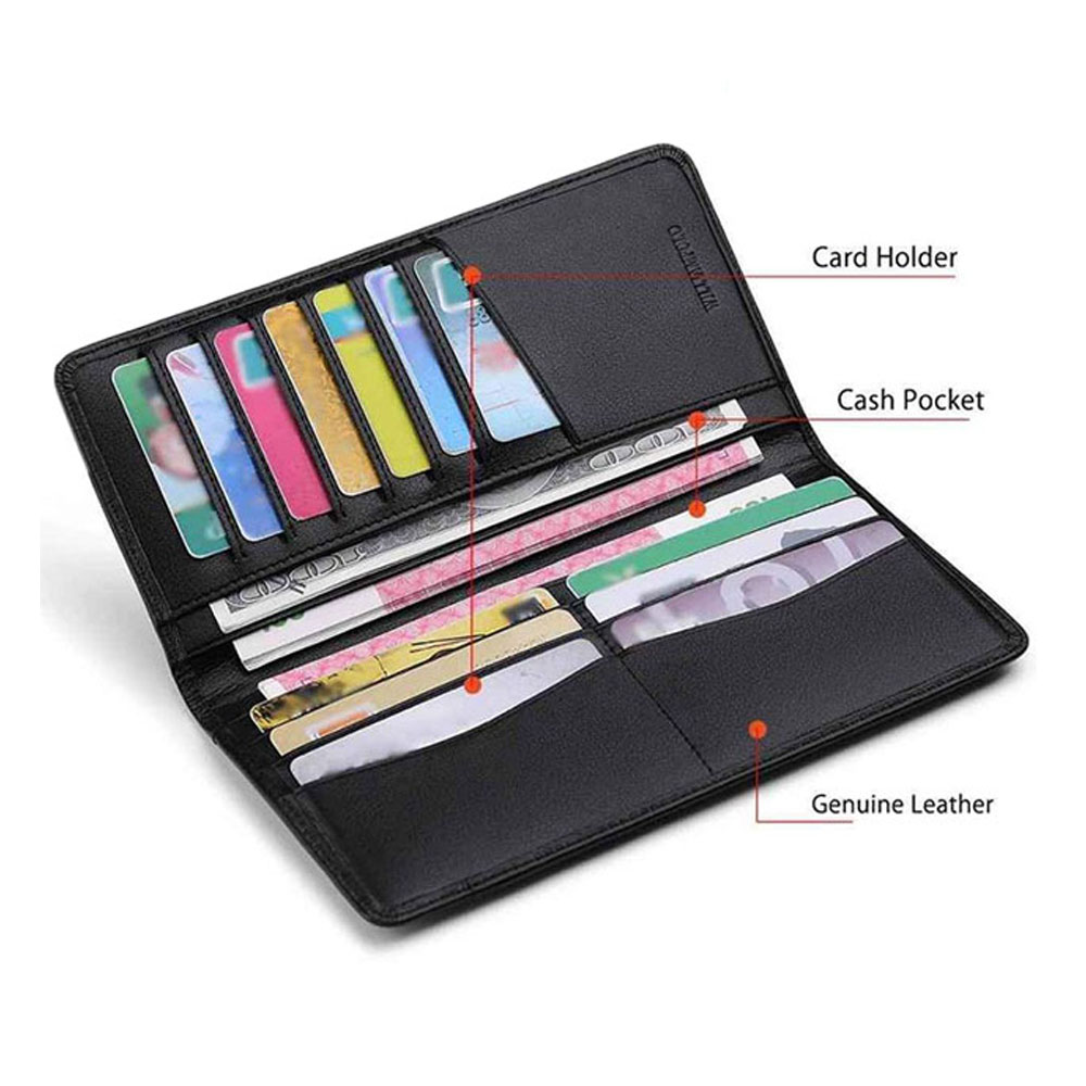 - This genuine leather wallet has a stylish look and design, and contains a classic picture pocket with a snap closure.